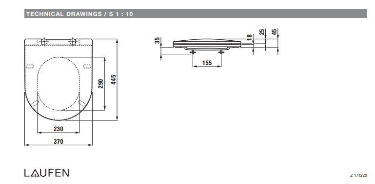 מושב אסלה תלויה LAUFEN מושב דק עם טריקה רכה מושב אסלה הידראולי (סגירה/טריקה שקטה) דק שליפה מהירה לאופן פרו סלים בייסיק