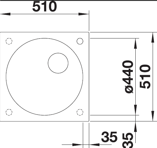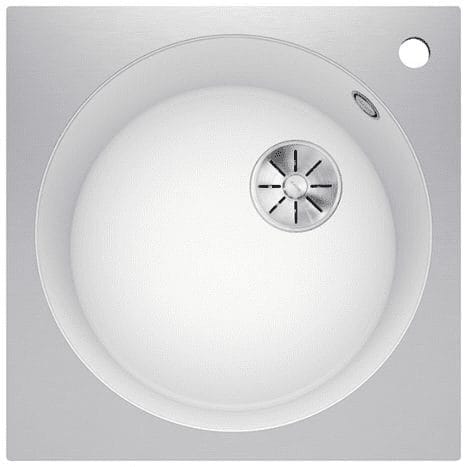 כיור פנימי עגול סילגרניט, עם פנל חיצוני מרובע מנירוסטה היוצר ניגודיות.