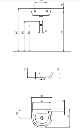 כיור תלוי בגודל 400X350X גובה 150 מק"ט C55311 תוצרת איטליה חברת PALAZZANI