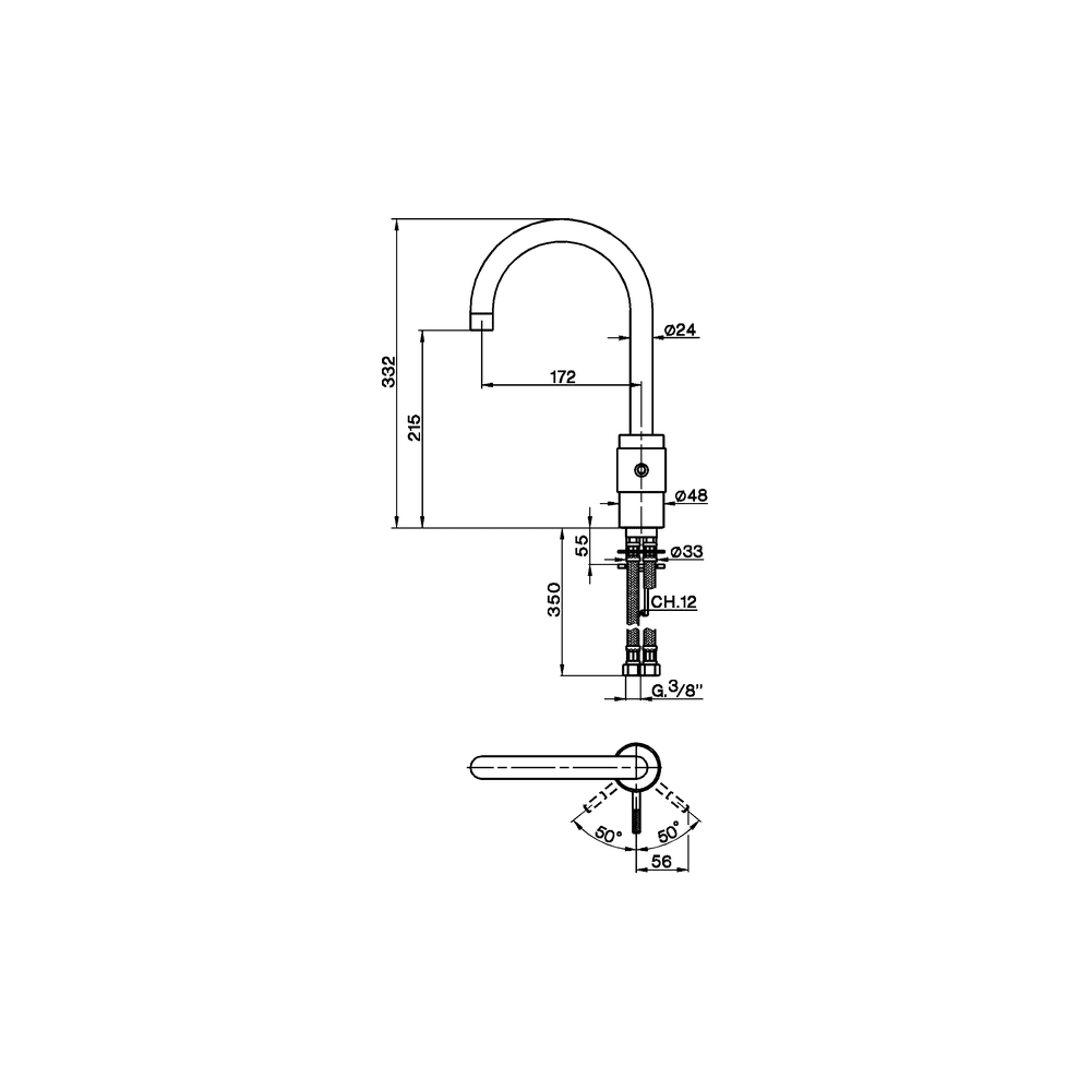 ST-53 תוצרת איטליה CISAL – ברז פרח גבוהה פית קשת לכיור  – כרום