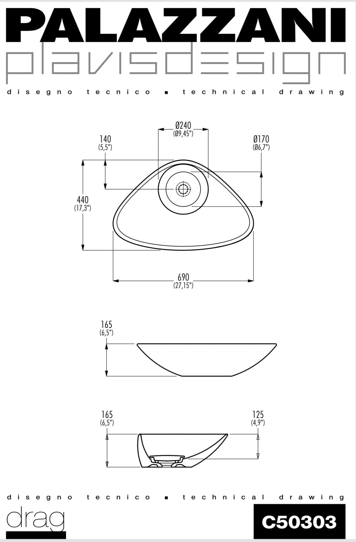 PALAZZANI DRAG C50303 כיור מונח מעוצב יצוק חרס – חברת תוצרת איטליה