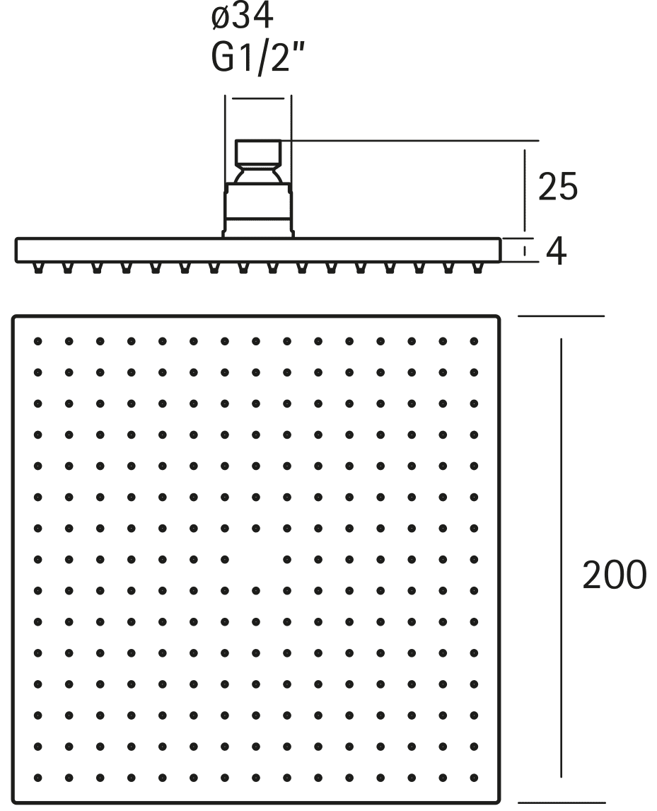 CISAL DS1644 ראש גשם מרובע 20 ס”מ INOX
