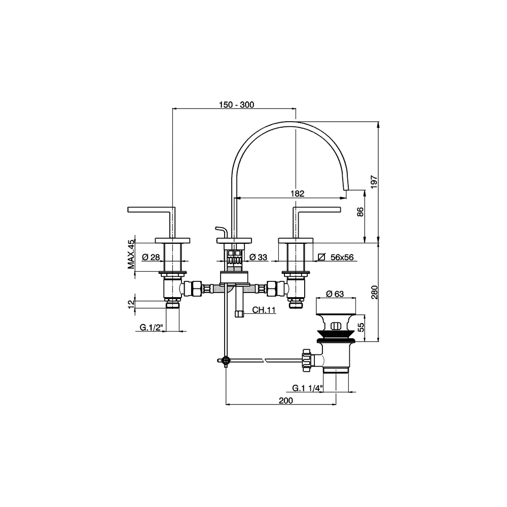 WA-106 תוצרת איטליה CISAL – ברז פרח שלישיה פית קשת כרום