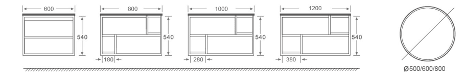 ארונות אמבטיה ארון תלוי, עם שני פתחים מידות רוחב: 60X46/39/36X54 ס"מ. סגירה בשיטת אל-טרק אפשרות כיור שקוע או כיור שולחני