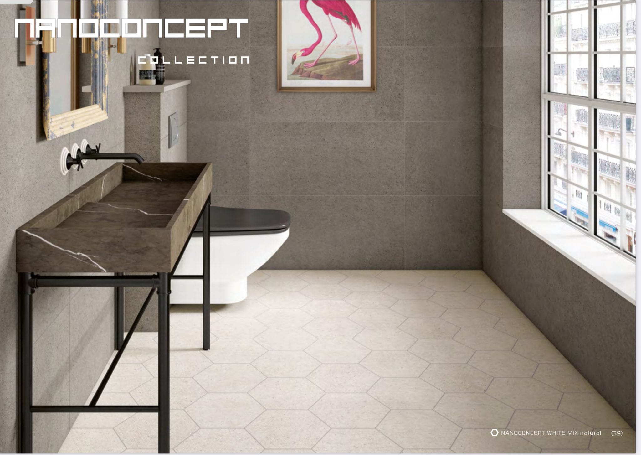 אריחי NANOCONCEPT GREY MIX HEXAGON APAVISA