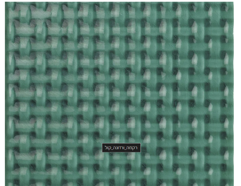 מרקם של רקמה והצבע משתלב ע"י צורת הרקמה , מרקם זכוכית היוצר אפקט תלת מימד עם אור וצל