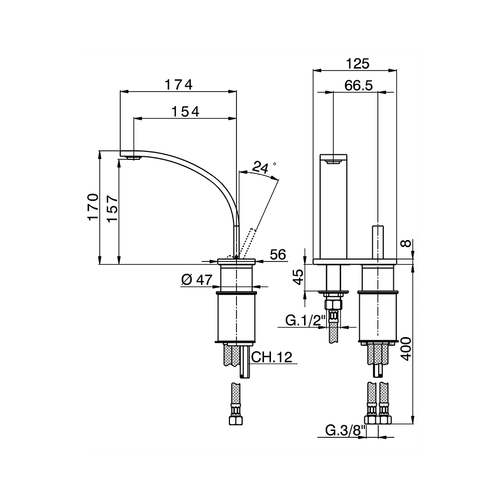 WA-651 תוצרת איטליה CISAL – ברז פרח מהמשטח 2 חורים לכיור  – כרום