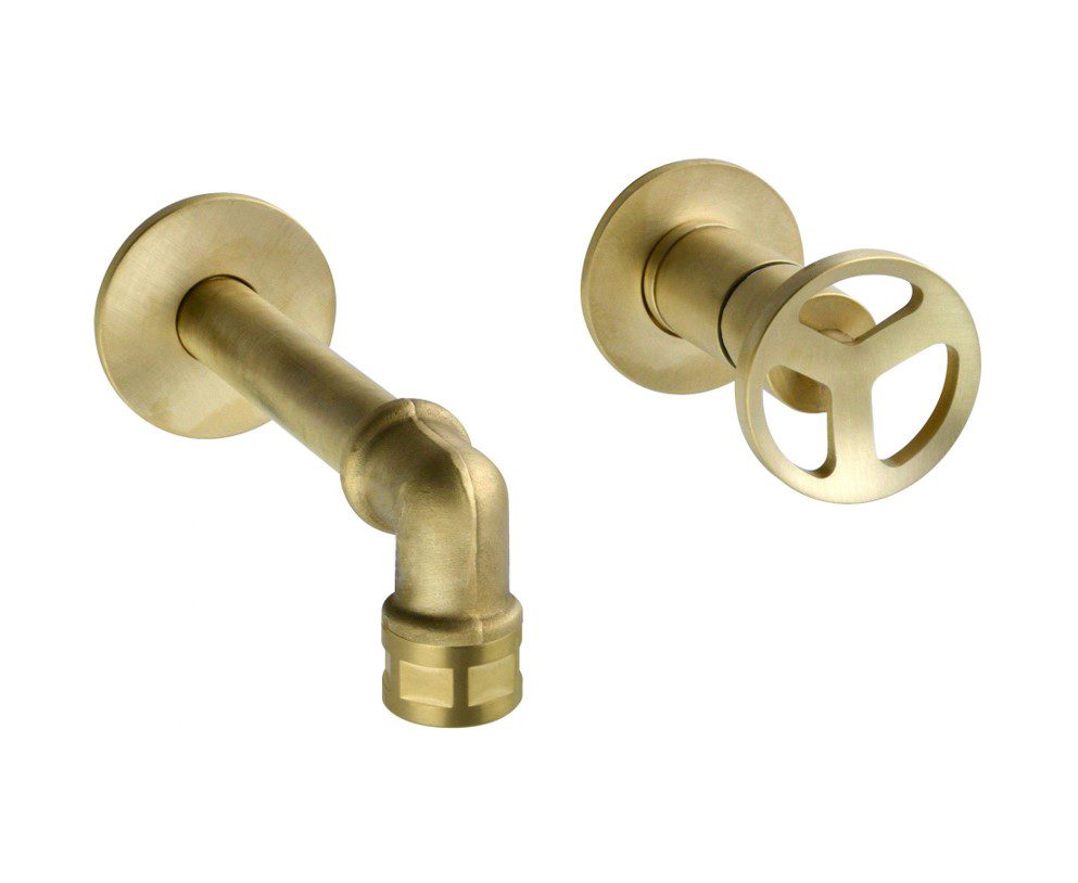 F52 ברז מהקיר מים חמים קרים לכיור סדרת פבריקה FABRICA איטליה ZANETTI CHINI אינטרפוץ + פיה נטורל ברס בראס פליז