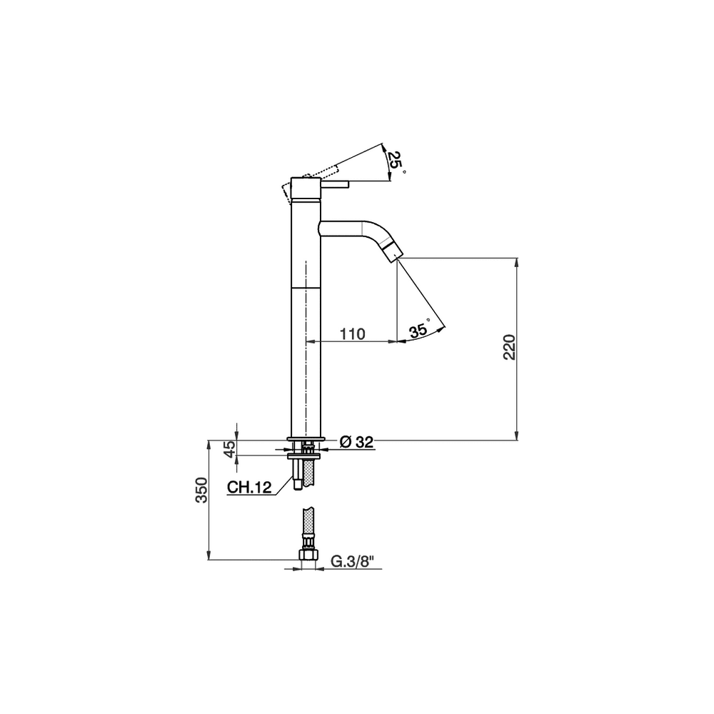/ CISAL LM-254 ברז פרח גבוה פיה קצרה – ידית אחת – סדרת SLIM – תוצאת איטליה -חברת CISAL