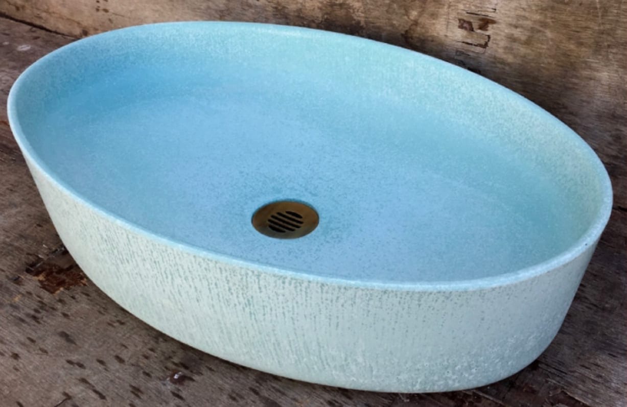 / OVAL 57 HIGH כיור אובלי מבטון – מונח – לרחיצת ידים עבודת יד – חברת STUDIOSTAR תוצרת כחול לבן